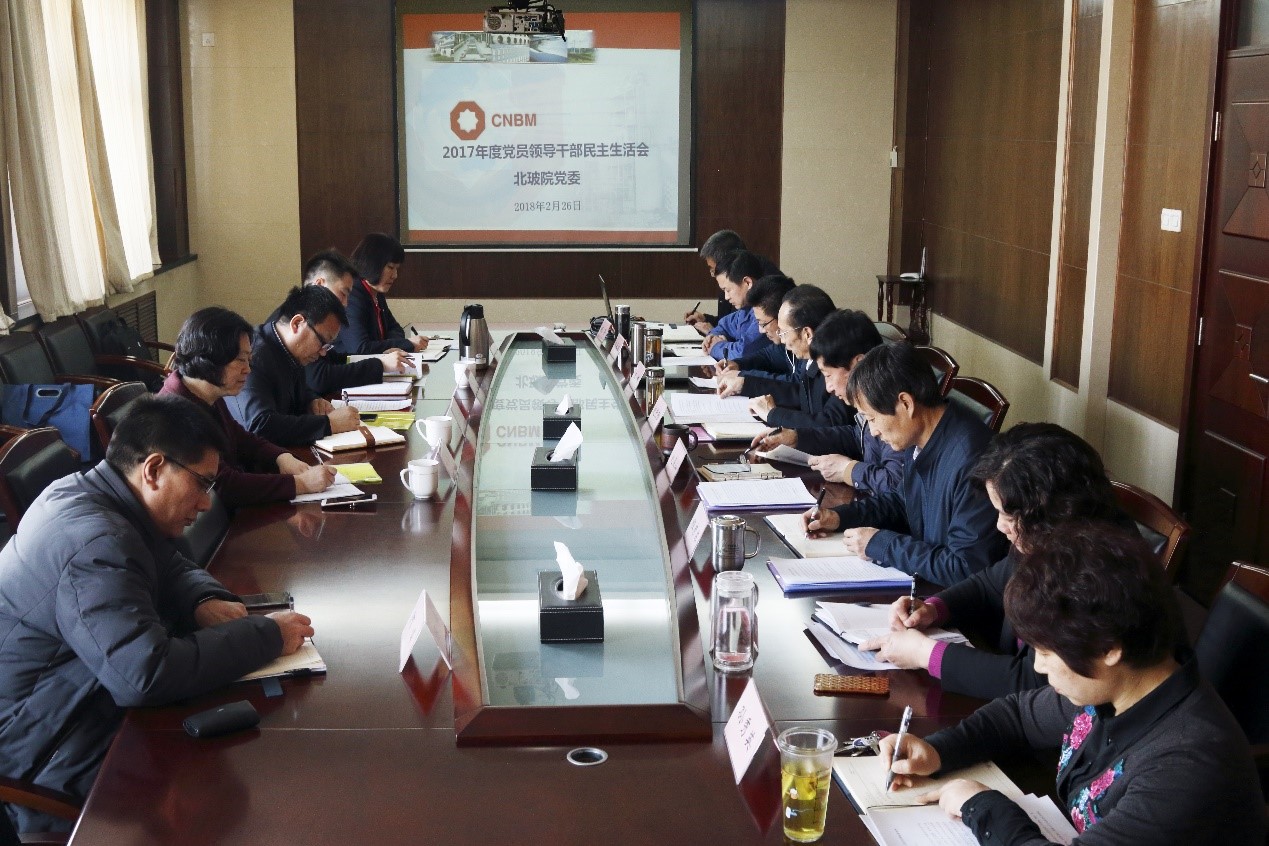 2月26日下午,北玻院黨委召開2017年度民主生活會,中材股份紀委書記王迎財、紀檢審計部高級經理周鵬,中材科技紀委副書記、黨群部部長趙春英到會指導,公司領導班子成員參加了民...