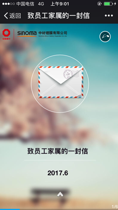 近日,中材鋰膜每名職工家屬的手機(jī)都接到一封溫馨的電子書信。為有效提高員工安全生產(chǎn)責(zé)任意識(shí),確保公司各項(xiàng)安全生產(chǎn)工作文明有序的開展,中材鋰膜以安全生產(chǎn)月為契機(jī),開展...